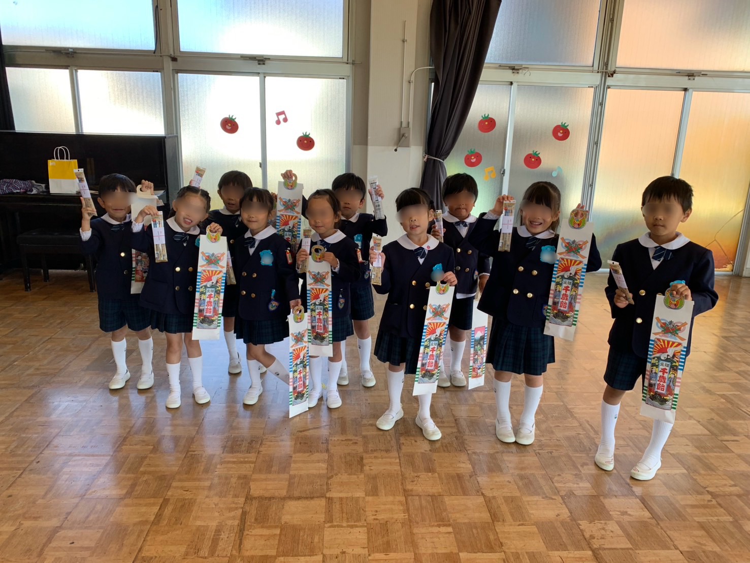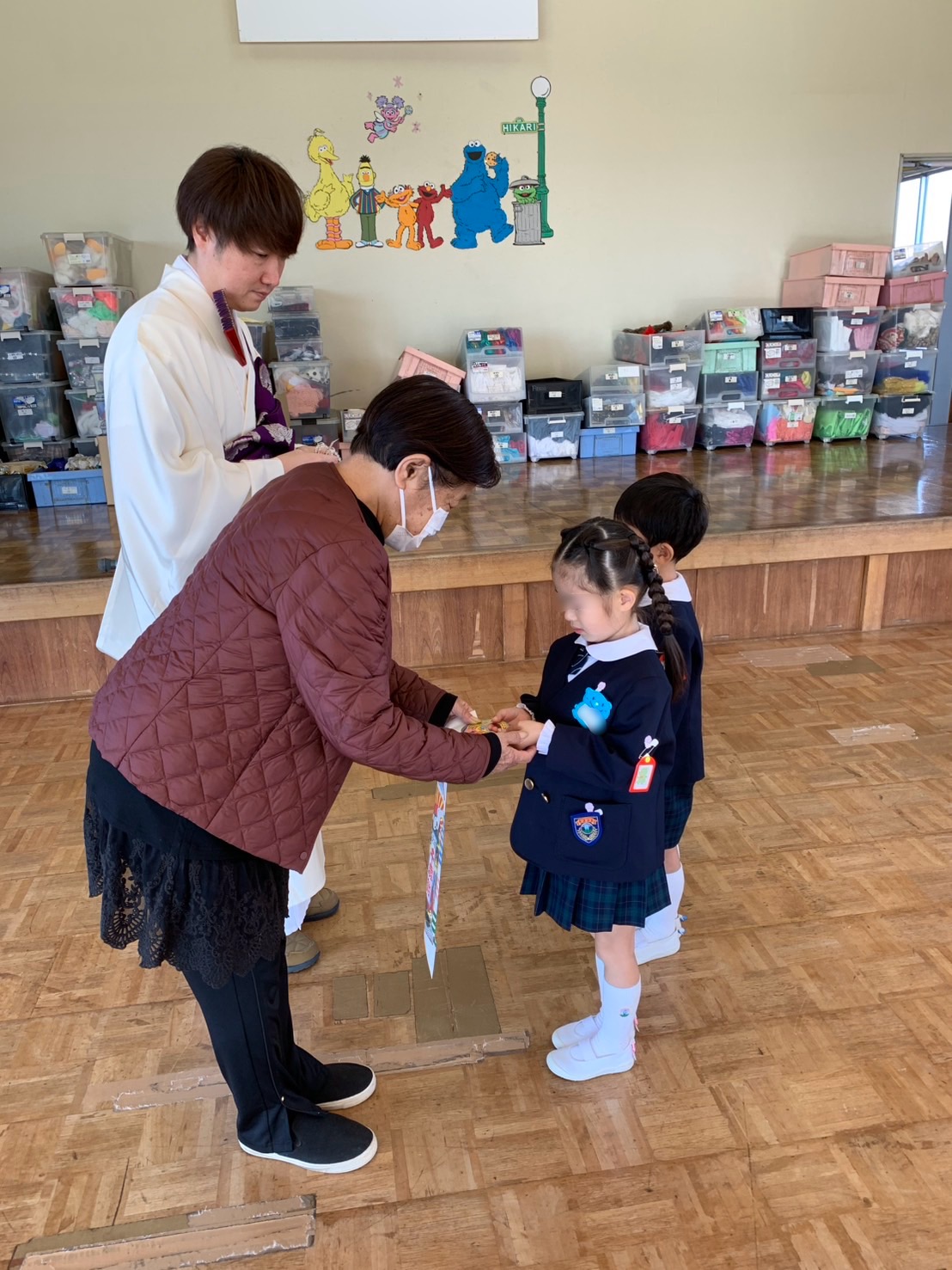 さくら組さんから、すみれ組さん、たんぽぽ組さんへマスク入れを